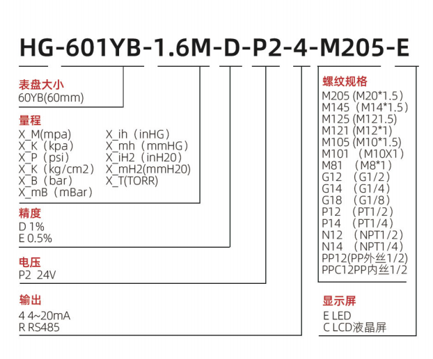 安裝螺紋: M20X1.5 (默認(rèn)) (可按需定制)